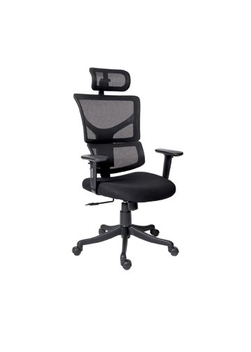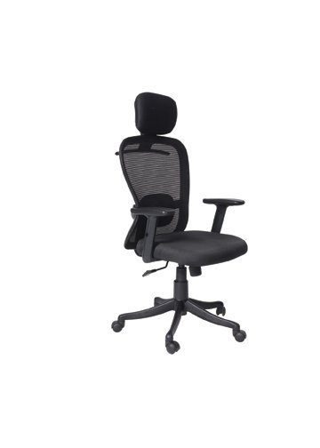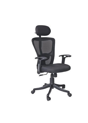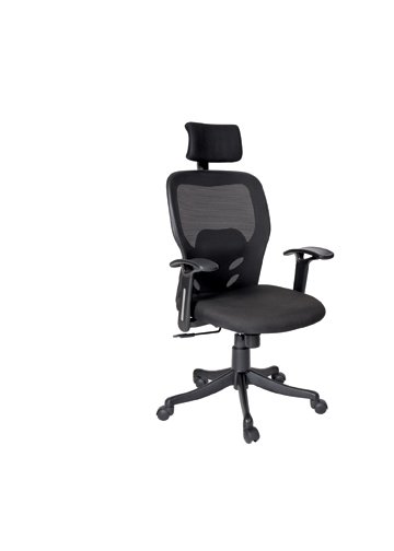 High Back Chair with Adjustable P.U Arms, Gas Lift, Nylon Base, Twin Wheel Nylon Castors, Seat and Back Net Tapestry.Synchro Tilt