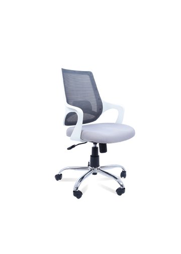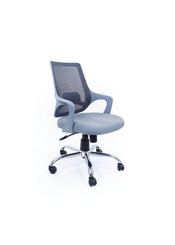 Medium Back Chair in Grey Back, Grey Arms, Gas Lift, Chrome Base, Twin Wheel Nylon Castors, Net Back and Seat Fabric Tapestry.Swivel Tilt