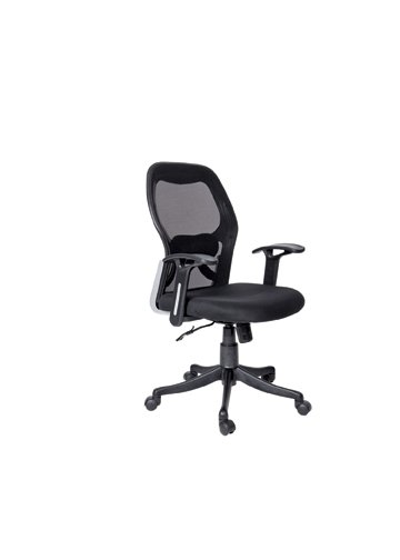 Medium Back Chair with Adjustable P.U Arms, Gas Lift, Nylon Base, Twin Wheel Nylon Castors, Seat and Back Net Tapestry,Synchro Tilt